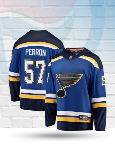 Take your Blues support to the ice in this David Perron St. Louis Blues Fanatics Home Jersey! You’ll be ready to show off your unique St Louis Blues spirit in this new David Perron St. Louis Blues Fanatics Home Jersey, which features a light weight tackle twill team crest on the front, replica team decorations, and light weight tackle twill player name and number.