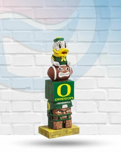 Have your mantle or fan cave proudly show off team pride with the Oregon Ducks Tiki Totem. This statue is made of Polystone, has handpainted graphics, and is officially team licensed. The Oregon Ducks Tiki Totem is the perfect way to show off your fandom in your home or office.