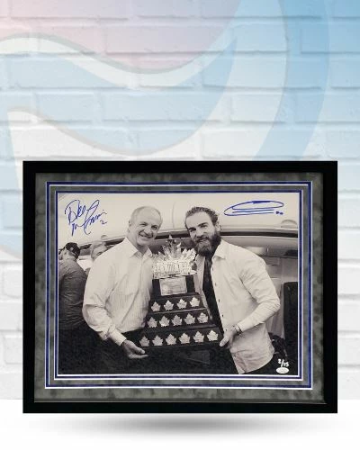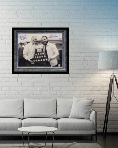 This Al MacInnis and Ryan O’Reilly St Louis Blues dual autographed framed 16×20 is the perfect addition to your fan cave. Al MacInnis and Ryan O’Reilly signed this photo at our retail location in the St Louis Premium Outlet during private autograph signings. Whether you’re looking to add to your personal collection or seeking the best gift, the Al MacInnis and Ryan O’Reilly St Louis Blues dual autographed framed 16×20 is a great choice!Â