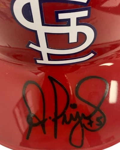 This Albert Pujols St Louis Cardinals autographed replica Rawlings batting helmet is the perfect addition to your fan cave. Albert Pujols personally hand-signed this helmet during a private autograph signing. Fan Cave guarantees this autograph with a Certificate of Authenticity and tamper resistant hologram from PSA DNA Authentication. Whether you’re looking to add to your personal collection or seeking the best gift, the Albert Pujols St Louis Cardinals autographed replica Rawlings batting helmet is a great choice!Â