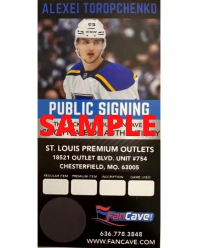 This Alexei Toropchenko St Louis Blues autographed 8×10 photo is the perfect addition to your fan cave. Alexei Toropchenko personally hand-signed this photo during a public autograph signing. Fan Cave guarantees this autograph with a Certificate of Authenticity and tamper resistant hologram from Fan Cave Sports. Whether you’re looking to add to your personal collection or seeking the best gift, the Alexei Toropchenko St Louis Blues autographed 8×10 photo is a great choice!Â