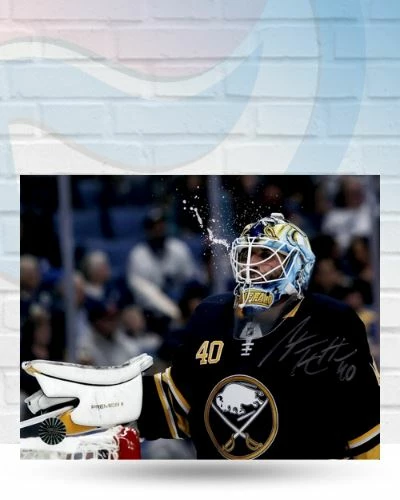 This Carter Hutton Buffalo Sabres autographed water spit 8×10 photo is the perfect addition to your fan cave. Carter Hutton personally hand-signed this photo during a public autograph signing. Fan Cave guarantees this autograph with a Certificate of Authenticity and tamper resistant hologram from Fan Cave Sports. Whether you’re looking to add to your personal collection or seeking the best gift, the Carter Hutton Buffalo Sabres autographed water spit photo is a great choice!Â