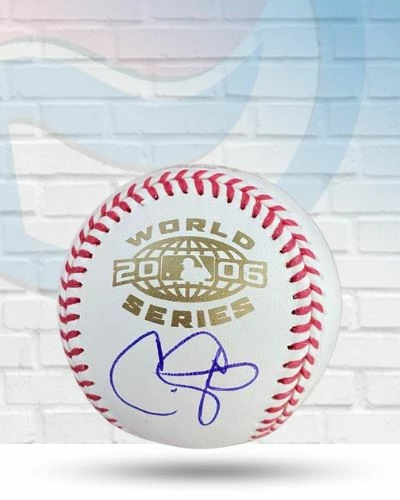 This Chris Carpenter St Louis Cardinals autographed 2006 World Series baseball is the perfect addition to your fan cave. Chris Carpenter personally hand-signed this baseball during a private autograph signing. Fan Cave guarantees this autograph with a Certificate of Authenticity and tamper resistant hologram from James Spence Authentication. Whether you’re looking to add to your personal collection or seeking the best gift, the Chris Carpenter St Louis Cardinals autographed 2006 World Series baseball is a great choice!Â