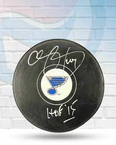This Chris Pronger St Louis Blues autographed logo puck with inscription is the perfect addition to your fan cave. Chris Pronger personally hand-signed this puck during a public autograph signing. Fan Cave guarantees this autograph with a Certificate of Authenticity and tamper resistant hologram from James Spence Authentication. Whether you’re looking to add to your personal collection or seeking the best gift, the Chris Pronger St Louis Blues autographed logo puck is a great choice!