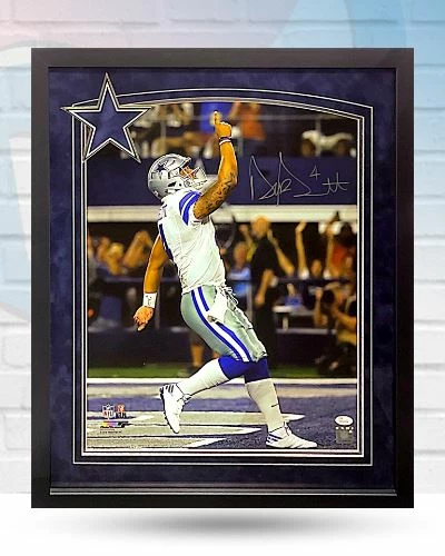 This Dak Prescott Dallas Cowboys autographed framed 16×20 is the perfect addition to your fan cave. Dak Prescott signed this photo during a private autograph signing. Whether you’re looking to add to your personal collection or seeking the best gift, the Dak Prescott Dallas Cowboys autographed framed 16×20 is a great choice!Â