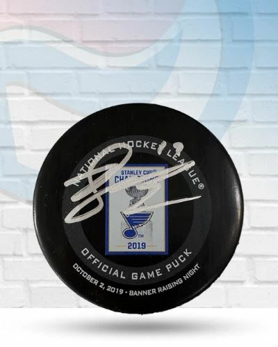 This Jaden Schwartz St Louis Blues autographed Banner Raising Night puck is the perfect addition to your fan cave. Jaden Schwartz personally hand-signed this puck during a private autograph signing. Fan Cave guarantees this autograph with a Certificate of Authenticity and tamper resistant hologram from Fan Cave Sports. Whether you’re looking to add to your personal collection or seeking the best gift, the Jaden Schwartz St Louis Blues autographed Banner Raising Night puck is a great choice!Â