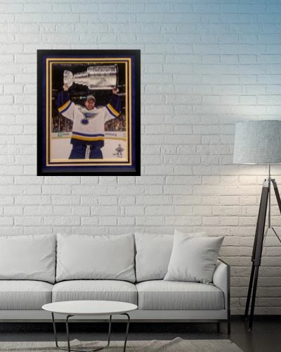 This Jordan Binnington St Louis Blues autographed framed 16×20 is the perfect addition to your fan cave. Jordan Binnington signed this photo during a private autograph signing. Whether you’re looking to add to your personal collection or seeking the best gift, the Jordan Binnington St Louis Blues autographed framed 16×20 is a great choice!Â