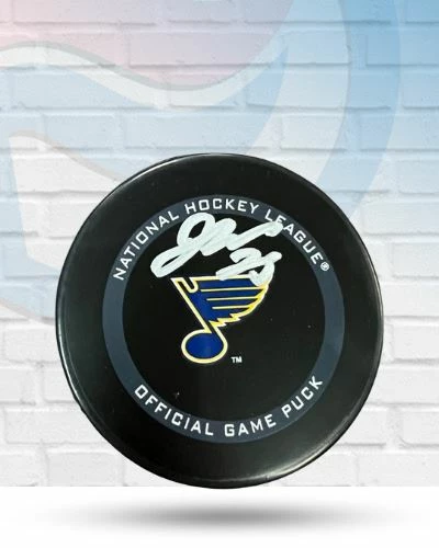 This Jordan Kyrou St Louis Blues autographed Official Game puck is the perfect addition to your fan cave. Jordan Kyrou personally hand-signed this puck during an  autograph signing. Fan Cave guarantees this autograph with a Certificate of Authenticity and tamper resistant hologram from James Spence Authentication. Whether you’re looking to add to your personal collection or seeking the best gift, the Jordan Kyrou St Louis Blues autographed Official Game puck is a great choice!Â