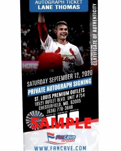 This Lane Thomas St Louis Cardinals autographed photo is the perfect addition to your fan cave. Lane Thomas personally hand-signed this photo during a private autograph signing. Fan Cave guarantees this autograph with a Certificate of Authenticity and tamper resistant hologram from Fan Cave Sports. Whether you’re looking to add to your personal collection or seeking the best gift, the Lane Thomas St Louis Cardinals autographed photo is a great choice!Â