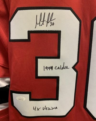 Martin inscribed “1994 Calder”, “4x Vezina”, “3x SC Champ” and “HOF 18”