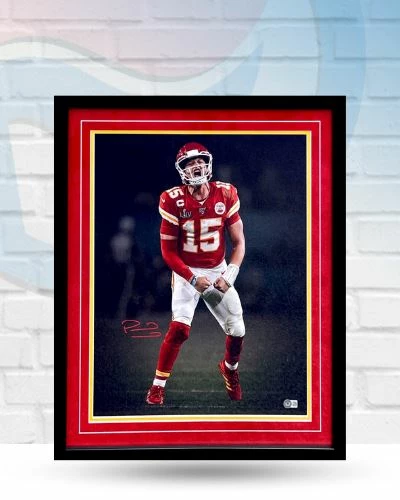 This Patrick Mahomes Kansas City Chiefs Autographed Framed 16×20 is the perfect addition to your fan cave. Patrick Mahomes signed this photo during a private autograph signing. Whether you’re looking to add to your personal collection or seeking the best gift, the Patrick Mahomes Kansas City Chiefs Autographed Framed 16×20 is a great choice!Â