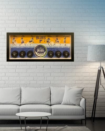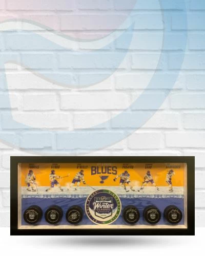 This St Louis Blues 2022 Winter Classic Fan Cave Exclusive Autographed Framed Puck Display is the perfect addition to your fan cave. Each player signed these pucks during private autograph signings. Whether you’re looking to add to your personal collection or seeking the best gift, this St Louis Blues 2022 Winter Classic Fan Cave Exclusive Autographed Framed Puck Display is a great choice!Â