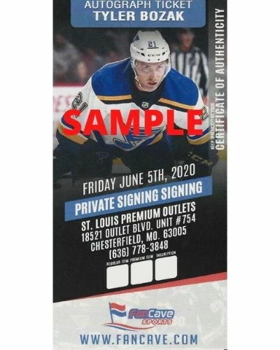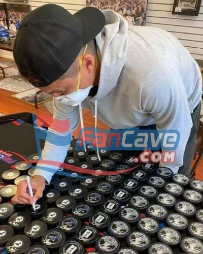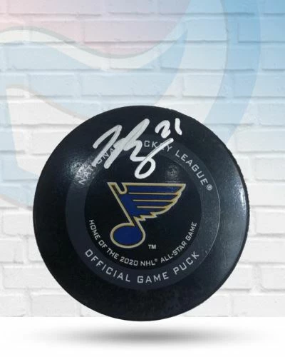 This Tyler Bozak St Louis Blues autographed 2020 official game puck is the perfect addition to your fan cave. Tyler Bozak personally hand-signed this puck during a private autograph signing. Fan Cave guarantees this autograph with a Certificate of Authenticity and tamper resistant hologram from Fan Cave Sports. Whether you’re looking to add to your personal collection or seeking the best gift, the Tyler Bozak St Louis Blues autographed 2020 official game puck is a great choice!Â
