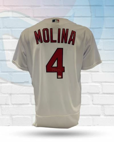 This Yadier Molina St Louis Cardinals autographed jersey is the perfect addition to your fan cave or game day wardrobe. Yadier Molina personally hand-signed this jersey during a private autograph signing. Fan Cave guarantees this autograph with a Certificate of Authenticity and tamper resistant hologram from Major League Baseball Authentication. Whether you’re looking to add to your personal collection or seeking the best gift, the Yadier Molina St Louis Cardinals autographed jersey is a great choice!Â