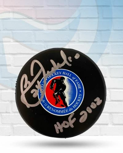 This Bernie Federko St Louis Blues autographed NHL Hall of Fame logo puck with Inscription is the perfect addition to your fan cave. Bernie Federko personally hand-signed this puck during an autograph signing. Bernie also inscribed “HOF 2002”. Fan Cave guarantees this autograph with a Certificate of Authenticity and tamper resistant hologram from Fan Cave Sports. Whether you’re looking to add to your personal collection or seeking the best gift, the Bernie Federko St Louis Blues autographed NHL Hall of Fame logo puck iwith Inscription s a great choice!Â