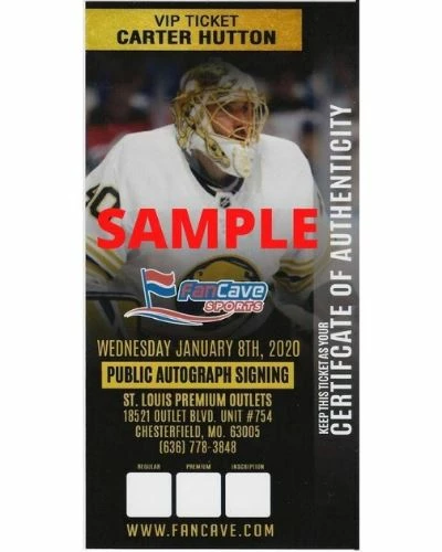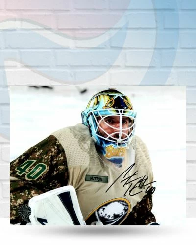 This Carter Hutton Buffalo Sabres autographed Military jersey photo is the perfect addition to your fan cave. Carter Hutton personally hand-signed this photo during a public autograph signing. Fan Cave guarantees this autograph with a Certificate of Authenticity and tamper resistant hologram from Fan Cave Sports. Whether you’re looking to add to your personal collection or seeking the best gift, the Carter Hutton Buffalo Sabres autographed Military jersey photo is a great choice!Â