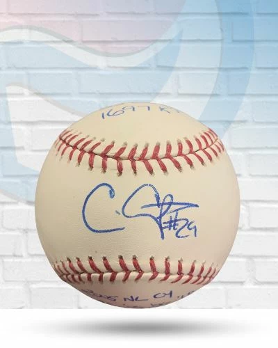 This Chris Carpenter St Louis Cardinals autographed baseball is the perfect addition to your fan cave. Chris Carpenter personally hand-signed this baseball during a private autograph signing. Chris also inscribed “144 Wins”, “3.76 ERA”, “33 CG’s”, “1697 k’s”, “2005 NL CY”, ” 3x AS ’05, ’06’, ’10” and “2x WS Champ ’06 ’11”.  Fan Cave guarantees this baseball with a Certificate of Authenticity and tamper resistant hologram from Major League Baseball Authentication. Whether you’re looking to add to your personal collection or seeking the best gift, the Chris Carpenter St Louis Cardinals autographed baseball is a great choice!Â
