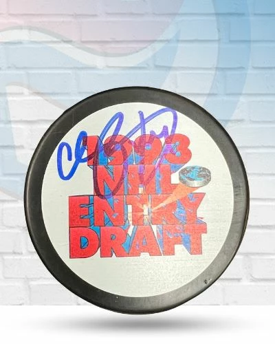 This Chris Pronger St Louis Blues autographed 1993 NHL Draft logo puck is the perfect addition to your fan cave. Chris Pronger personally hand-signed this puck during a public autograph signing. Fan Cave guarantees this autograph with a Certificate of Authenticity and tamper resistant hologram from James Spence Authentication. Whether you’re looking to add to your personal collection or seeking the best gift, the Chris Pronger St Louis Blues autographed 1993 NHL Draft logo puck is a great choice!Â