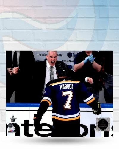 This St Louis Blues Stanley Cup 8X10 Officially Licensed Photo showcases one of the most memorable experiences of the 2019 Stanley Cup Championship. Craig Berube and Patrick Maroon come together after the amazing Game 7 goal.  A must have for your Fan Cave or to get signed in the future.