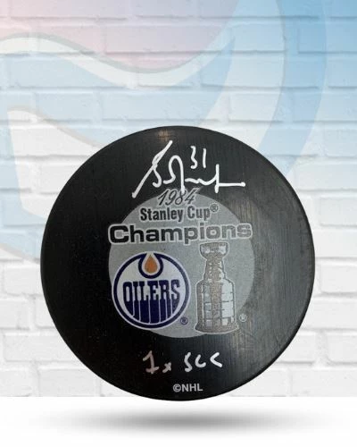 This Grant Fuhr Edmonton Oilers autographed 1984 Oilers Stanley Cup puck is the perfect addition to your fan cave. Grant Fuhr personally hand-signed this puck during a public autograph signing. Fan Cave guarantees this autograph with a Certificate of Authenticity and tamper resistant hologram from Fan Cave Sports. Whether you’re looking to add to your personal collection or seeking the best gift, the Grant Fuhr Edmonton Oilers autographed 1984 Oilers Stanley Cup puck is a great choice!