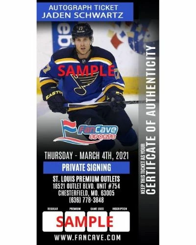 This Jaden Schwartz St Louis Blues Autographed 16×20 is the perfect addition to your fan cave. Jaden Schwartz personally hand-signed this photo during a private autograph signing. Fancave.com guarantees this autograph with a Certificate of Authenticity and tamper resistant hologram from Fan Cave Sports. Whether you’re looking to add to your personal collection or seeking the best gift, the Jaden Schwartz St Louis Blues autographed 16×20 is a great choice!