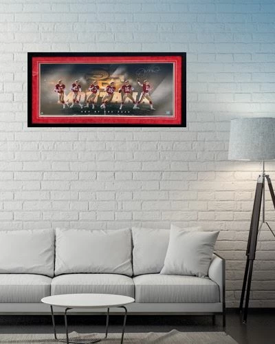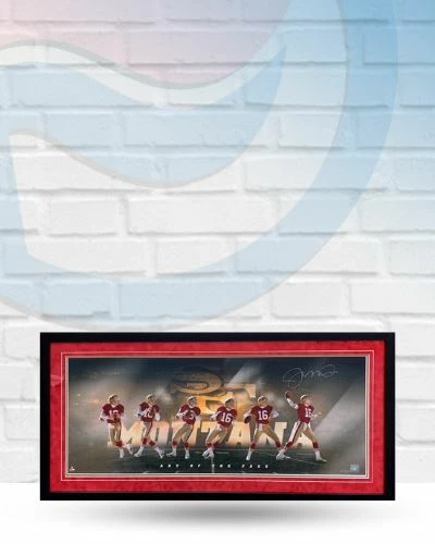 This Joe Montana San Francisco Autographed Framed 36×15 is the perfect addition to your fan cave. Joe Montana signed this photo during a private autograph signing. Whether you’re looking to add to your personal collection or seeking the best gift, the Joe Montana San Francisco 49ers Autographed Framed 36×15 is a great choice!Â