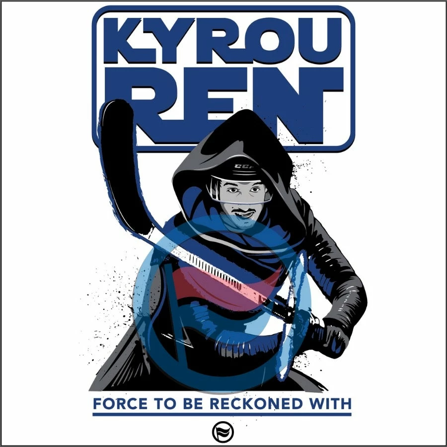 T-Shirt Launch #2- “Kyrou Ren” – Originally designed by Tony Mancha & Ryan Houston – The shirt features a twist on your favorite player Jordan Kyrou and Star Wars Kylo Ren! Custom Designed and ONLY Available at Fan Cave Sports.