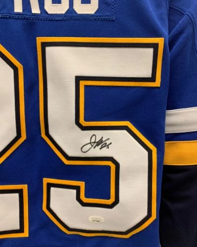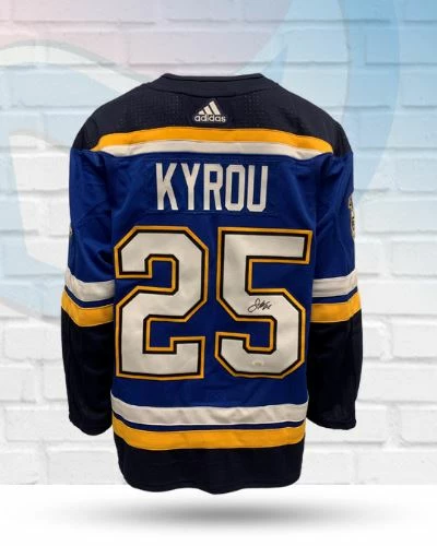 This Jordan Kyrou St Louis Blues autographed Adidas Home jersey is the perfect addition to your fan cave or game day wardrobe. Jordan Kyrou personally hand-signed this jersey during a private autograph signing. Fan Cave guarantees this autograph with a Certificate of Authenticity and tamper resistant hologram from James Spence Authentication. Whether you’re looking to add to your personal collection or seeking the best gift, the Jordan Kyrou St Louis Blues autographed Adidas Home jersey is a great choice!Â