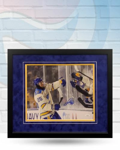 This Jordan Kyrou St Louis Blues Autographed Framed 11×14 is the perfect addition to your fan cave. Jordan Kyrou signed this photo during a private autograph signing. Whether you’re looking to add to your personal collection or seeking the best gift, the Jordan Kyrou St Louis Blues Autographed Framed 11×14 is a great choice!Â