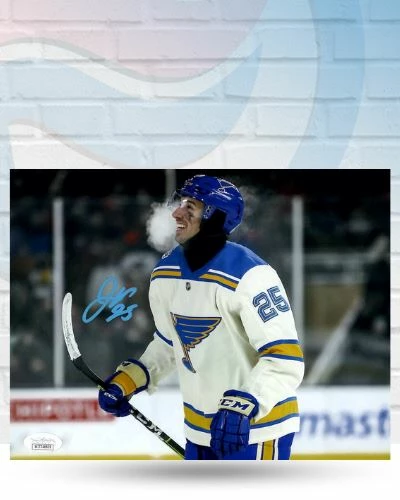 This Jordan Kyrou St Louis Blues autographed photo is the perfect addition to your fan cave. Jordan Kyrou personally hand-signed this photo during an autograph signing. Fan Cave guarantees this autograph with a Certificate of Authenticity and tamper resistant hologram from James Spence Authentication. Whether you’re looking to add to your personal collection or seeking the best gift, the Jordan Kyrou St Louis Blues autographed photo is a great choice!Â
