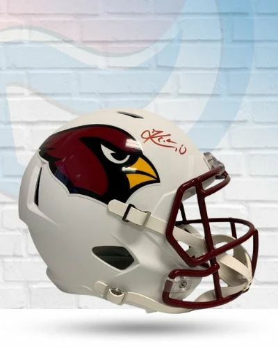 This Kyler Murray Arizona Cardinals autographed full size speed replica helmet is the perfect addition to your fan cave. Kyler Murray personally hand-signed this helmet during a private autograph signing. Fan Cave guarantees this autograph with a Certificate of Authenticity and tamper resistant hologram from Beckett Authentication Services. Whether you’re looking to add to your personal collection or seeking the best gift, the Kyler Murray Arizona Cardinals autographed full size speed replica helmet is a great choice!Â