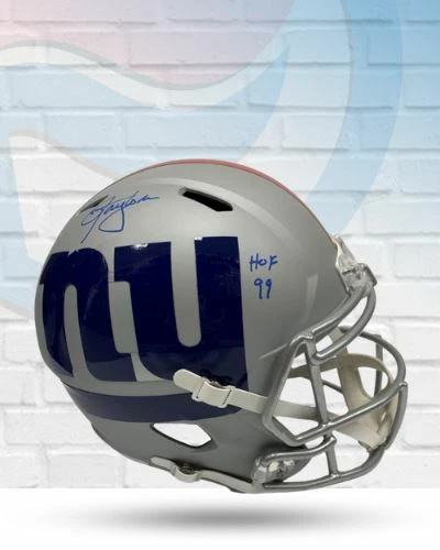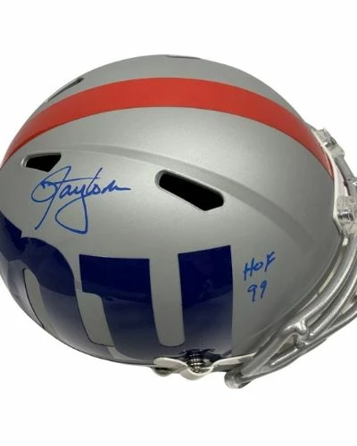 This Lawrence Taylor New York Giants autographed full size Amp speed replica helmet is the perfect addition to your fan cave. Lawrence Taylor personally hand-signed this helmet during a private signing. Fan Cave guarantees this autograph with a Certificate of Authenticity and tamper resistant hologram from Beckett Authentication Services. Whether you’re looking to add to your personal collection or seeking the best gift, the Lawrence Taylor New York Giants autographed full size Amp speed replica helmet is a great choice!Â