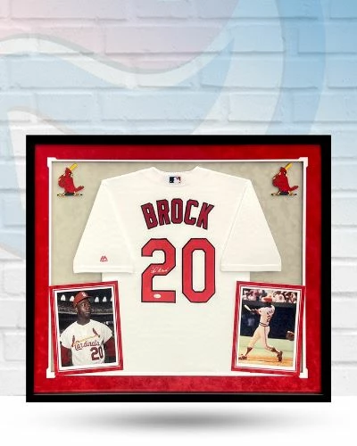 This Lou Brock St Louis Cardinals Autographed Framed Majestic Jersey is the perfect addition to your fan cave. Lou Brock signed this jersey during a private autograph signing. Whether you’re looking to add to your personal collection or seeking the best gift, the Lou Brock St Louis Cardinals Framed Majestic Jersey is a great choice!Â