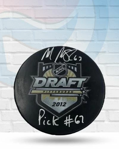 This MacKenzie MacEachern St Louis Blues autographed 2012 draft puck is the perfect addition to your fan cave. MacKenzie MacEachern personally hand-signed this puck during a public autograph signing. Fan Cave guarantees this autograph with a Certificate of Authenticity and tamper resistant hologram from Fan Cave Sports. Whether you’re looking to add to your personal collection or seeking the best gift, the MacKenzie MacEachern St Louis Blues autographed 2012 draft puck is a great choice!Â