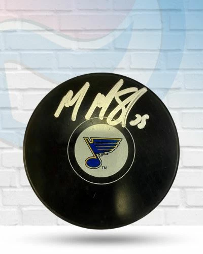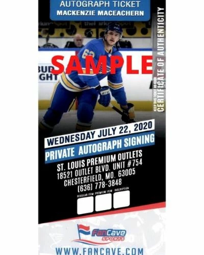 This MacKenzie MacEachern St Louis Blues autographed logo puck is the perfect addition to your fan cave. MacKenzie MacEachern personally hand-signed this puck during a private autograph signing. Fan Cave guarantees this autograph with a Certificate of Authenticity and tamper resistant hologram from Fan Cave Sports. Whether you’re looking to add to your personal collection or seeking the best gift, the MacKenzie MacEachern St Louis Blues autographed logo puck is a great choice!Â