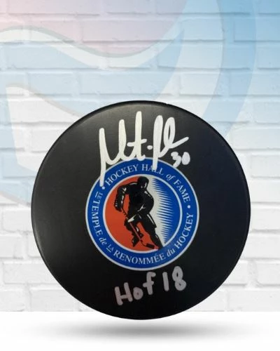 This Martin Brodeur New Jersey Devils autographed Hall of Fame logo puck with inscription is the perfect addition to your fan cave. Martin Brodeur personally hand-signed this puck during a private autograph signing. Fan Cave guarantees this autograph with a Certificate of Authenticity and tamper resistant hologram from James Spence Authentication. Whether you’re looking to add to your personal collection or seeking the best gift, the Martin Brodeur New Jersey Devils autographed Hall of Fame logo puck with inscription is a great choice!Â