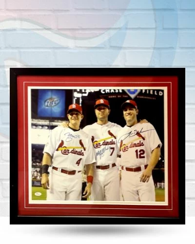 This Matt Holliday, Lance Berkmann and Yadier Molina St Louis Cardinals autographed framed 16×20 is the perfect addition to your fan cave. Each player signed this photo during a private autograph signing. Whether you’re looking to add to your personal collection or seeking the best gift, the Matt Holliday, Lance Berkmann and Yadier Molina St Louis Cardinals autographed framed 16×20 is a great choice!Â