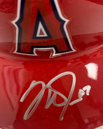 This Mike Trout Los Angeles Angels autographed replica Rawlings batting helmet is the perfect addition to your fan cave. Mike Trout personally hand-signed this helmet during a private autograph signing. Fan Cave guarantees this autograph with a Certificate of Authenticity and tamper resistant hologram from Major League Baseball Authentication. Whether you’re looking to add to your personal collection or seeking the best gift, the Mike Trout Los Angeles Angels autographed replica Rawlings batting helmet is a great choice!