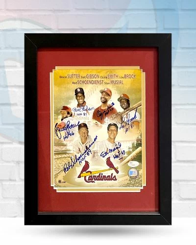 This multi autographed framed 8×10 collage photo is the perfect addition to your fan cave. Each player signed this photo and inscribed it with “HOF” during a private autograph signing. Whether you’re looking to add to your personal collection or seeking the best gift, this multi autographed St Louis Cardinals autographed framed collage 8×10 is a great choice!Â