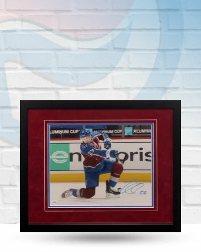 This Nathan MacKinnon Colorado Avalanche autographed framed 11×14 is the perfect addition to your fan cave. Nathan signed this photo during a private autograph signing. Whether you’re looking to add to your personal collection or seeking the best gift, this Nathan MacKinnon Colorado Avalanche autographed framed 11×14 is a great choice!Â