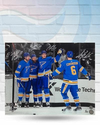 This O’Reilly, Parayko, Sanford, Edmundson St Louis Blues quad autographed photo is the perfect addition to your fan cave. Each player personally hand-signed this photo during public and private autograph signings. Fan Cave guarantees this autograph with a Certificate of Authenticity and tamper resistant hologram from Fan Cave Sports. Whether you’re looking to add to your personal collection or seeking the best gift, the O’Reilly Parayko Sanford Edmundson St Louis Blues quad autographed photo is a great choice!Â