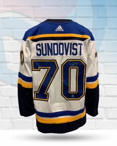 This Oskar Sundqvist St Louis Blues autographed Adidas away jersey is the perfect addition to your fan cave or game day wardrobe. Oskar Sundqvist personally hand-signed this jersey during a private autograph signing. Fan Cave guarantees this autograph with a Certificate of Authenticity and tamper resistant hologram from Fan Cave Sports. Whether you’re looking to add to your personal collection or seeking the best gift, the Oskar Sundqvist St Louis Blues autographed Adidas away jersey is a great choice!Â
