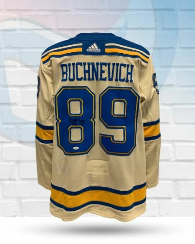 This Pavel Buchnevich St Louis Blues autographed 2022 Winter Classic jersey is the perfect addition to your fan cave or game day wardrobe. Pavel Buchnevich personally hand-signed this jersey during a public autograph signing. Fan Cave guarantees this autograph with a Certificate of Authenticity and tamper resistant hologram from James Spence Authentication. Whether you’re looking to add to your personal collection or seeking the best gift, the Pavel Buchnevich St Louis Blues autographed Adidas 2022 Winter Classic jersey is a great choice!Â