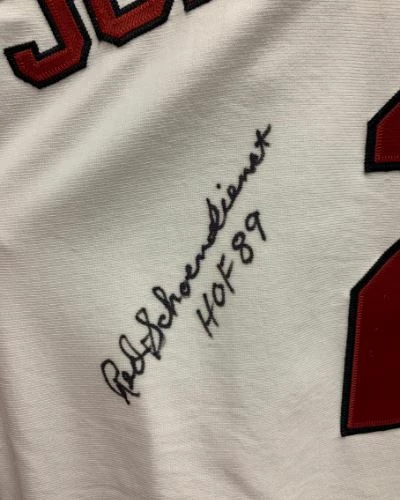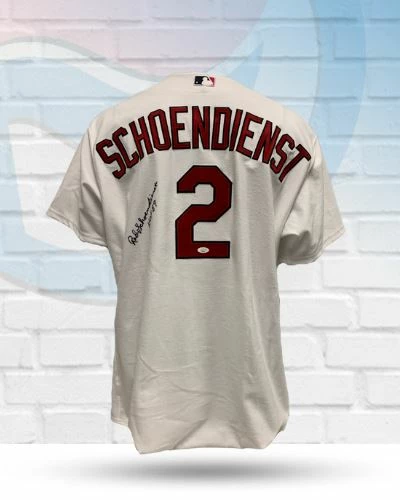 This Red Schoendienst St Louis Cardinals autographed Authentic Majestic jersey is the perfect addition to your fan cave or game day wardrobe. Red personally hand-signed this jersey during a private autograph signing. Red also inscribed “HOF 89”. Fan Cave guarantees this autograph with a Certificate of Authenticity and tamper resistant hologram from James Spence Authentication. Whether you’re looking to add to your personal collection or seeking the best gift, the Red Schoendienst St Louis Cardinals autographed Authentic Majestic jersey is a great choice!Â