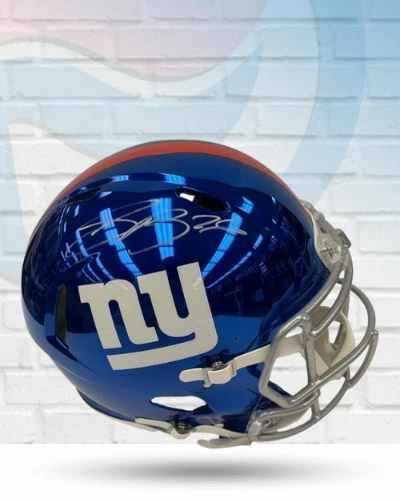 This Saquon Barkley New York Giants autographed full size chrome speed helmet is the perfect addition to your fan cave. Sawuon Barkley personally hand-signed this helmet during a private autograph signing. Fan Cave guarantees this autograph with a Certificate of Authenticity and tamper resistant hologram from Fanatics Authentic. Whether you’re looking to add to your personal collection or seeking the best gift, the Saquon Barkley New York Giants autographed full size chrome speed helmet is a great choice!Â