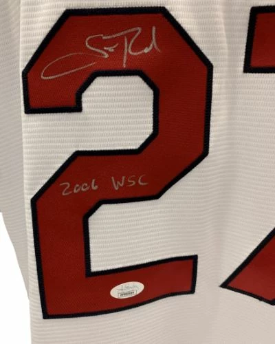 This Scott Rolen St Louis Cardinals autographed Majestic Cool Base jersey is the perfect addition to your fan cave or game day wardrobe. Scott Rolen personally hand-signed this jersey during a private autograph signing. Fan Cave guarantees this autograph with a Certificate of Authenticity and tamper resistant hologram from James Spence Authentication. Whether you’re looking to add to your personal collection or seeking the best gift, the Scott Rolen St Louis Cardinals autographed Majestic Cool Base jersey is a great choice!Â
