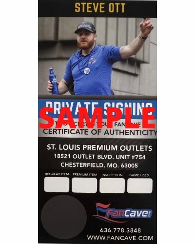 This Steve Ott St Louis Blues autographed Logo Puck is the perfect addition to your fan cave. Steve Ott personally hand-signed this puck during an autograph signing. Fan Cave guarantees this autograph with a Certificate of Authenticity and tamper resistant hologram from Fan Cave Sports. Whether you’re looking to add to your personal collection or seeking the best gift, the Steve Ott St Louis Blues autographed Logo Puck is a great choice!Â