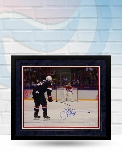 This TJ Oshie St Louis Blues autographed framed 16×20 is the perfect addition to your fan cave. TJ Oshie signed this photo during a private autograph signing. Whether you’re looking to add to your personal collection or seeking the best gift, the TJ Oshie and St Louis Blues autographed framed 16×20 is a great choice!Â