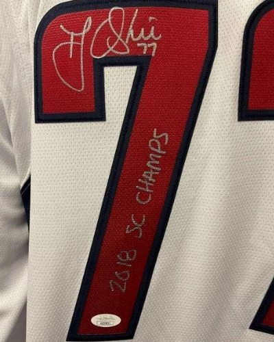 This TJ Oshie Washington Capitals autographed Fanatics Away Jersey with Stanley Cup Patch & Inscription is the perfect addition to your fan cave. TJ Oshie personally hand-signed this jersey during an autograph signing. Fan Cave guarantees this autograph with a Certificate of Authenticity and tamper resistant hologram from James Spence Authentication. Whether you’re looking to add to your personal collection or seeking the best gift, the TJ Oshie Washington Capitals autographed Fanatics Away Jersey with Stanley Cup Patch & Inscription is a great choice!Â