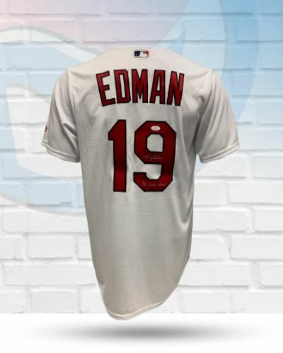 This Tommy Edman St Louis Cardinals autographed white Majestic Cool base jersey is the perfect addition to your fan cave or game day wardrobe. Tommy Edman personally hand-signed this jersey during a private autograph signing. Tommy also inscribed “’21 Gold Glove”. Fan Cave guarantees this autograph with a Certificate of Authenticity and tamper resistant hologram from James Spence Authentication. Whether you’re looking to add to your personal collection or seeking the best gift, the Tommy Edman St Louis Cardinals autographed jersey is a great choice!Â
